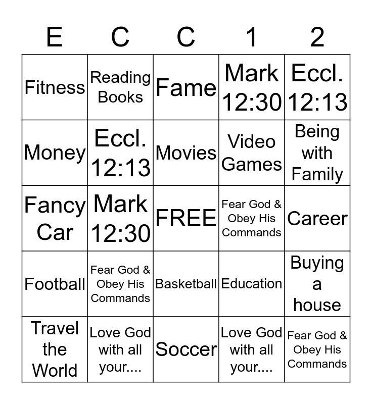 ⚠ This card has duplicate items: Fear God & Obey His Commands (3), Love God with all your.... (2), Eccl. 12:13 (2), Mark 12:30 (2)
