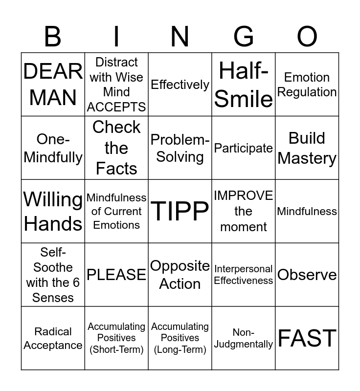 DBT Skills Bingo! | DBT ER Revision Bingo | DBT ER Bingo | DBT ER Revision Bingo | DBT Bingo