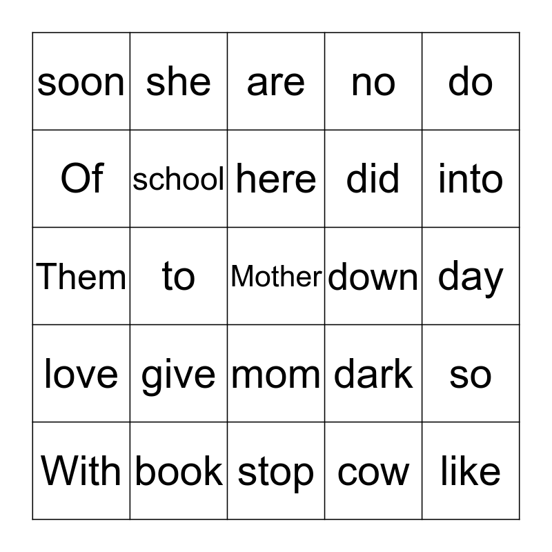 This bingo card has 67 words: said, was, I, cow, so, Little, she, got, did, wish, With, now, mom, no, for, Of, to, are, girl, do, love, give, here, my, you, There, went, more, down, have, Them, red, up, but, like, Be, big, stop, dark, into, No, school, Mother, come, blue, black, walk, Over, than, day, soon, must, Either, when, talk, your, book, My, three, jump, where, took, White, saw, took, from and good.
