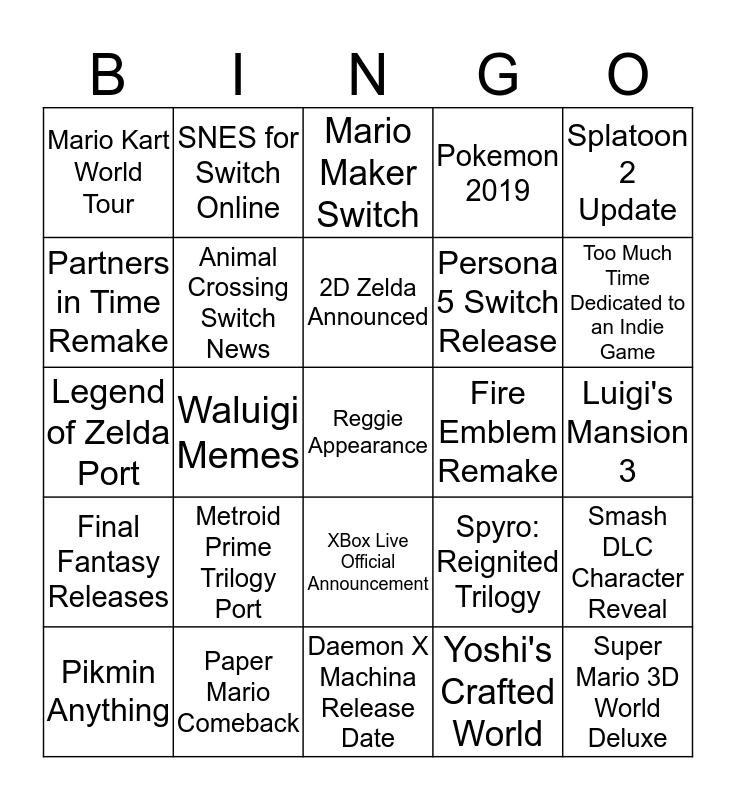 Nintendo E3 2018 Bingo | Nintendo E3 2018 Bingo | Nintendo E3 2021 Best Timeline Bingo | Nintendo Direct 13/02/2019 | Nintendo Direct Bingo