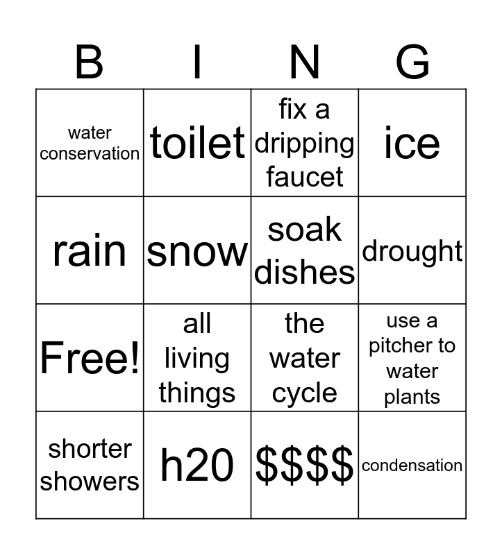 water conservation | H20 Bingo | Dehydration Bingo | Water Cycle | Water Cycle