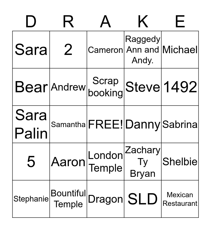Drake Family Bingo | Drake Family Bingo | Drake Family Bingo | Temple Bingo | Sara’s Bingo