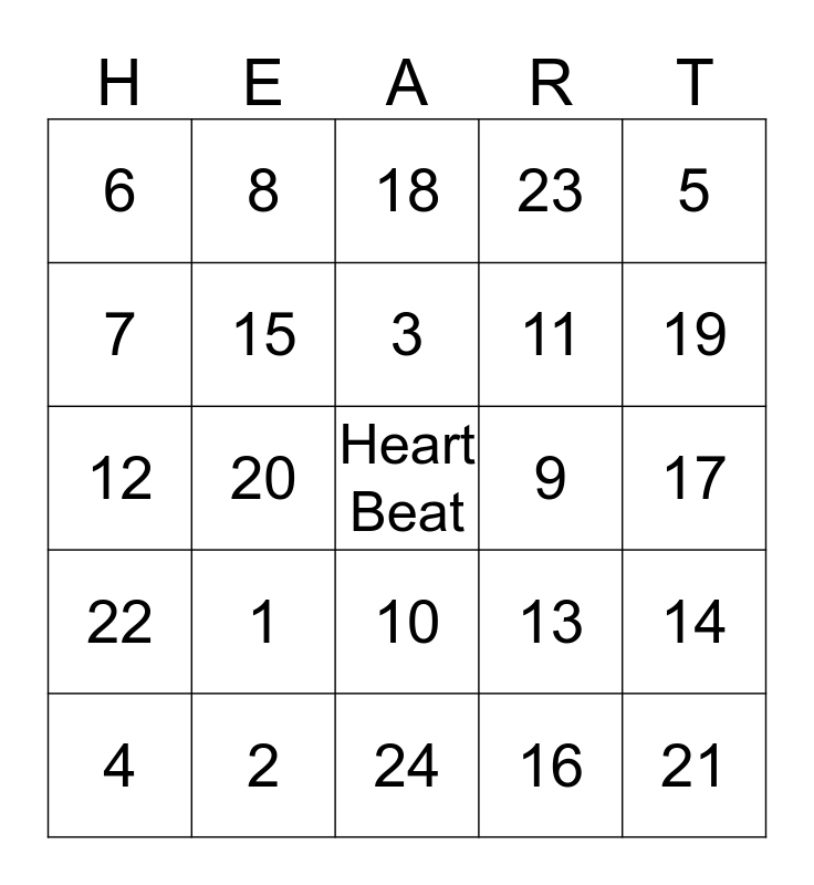 This bingo card has a free space and 24 words: 1, 2, 3, 4, 5, 6, 7, 8, 9, 10, 11, 12, 13, 14, 15, 16, 17, 18, 19, 20, 21, 22, 23 and 24.