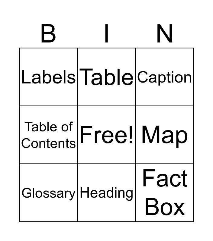 Text Features Bingo! | Nonfiction Text Features | BINGO | Nonfiction Text Features | Text Structure