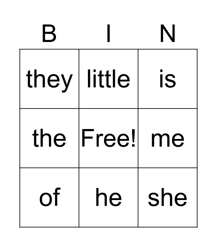 This bingo card has a free space and 21 words: Free Space, am, little, see, we, of, they, is, a, he, for, the, like, to, me, have, look, my, she, with and I you.