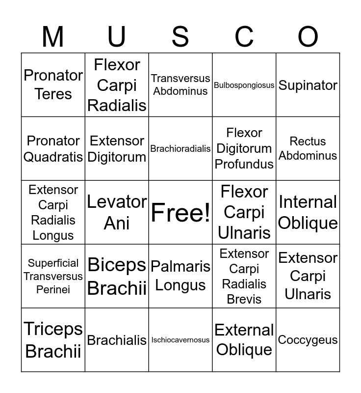 MUSCO | Muscles Bingo | MUSCO | Muscle list 2 | Muscle list #2