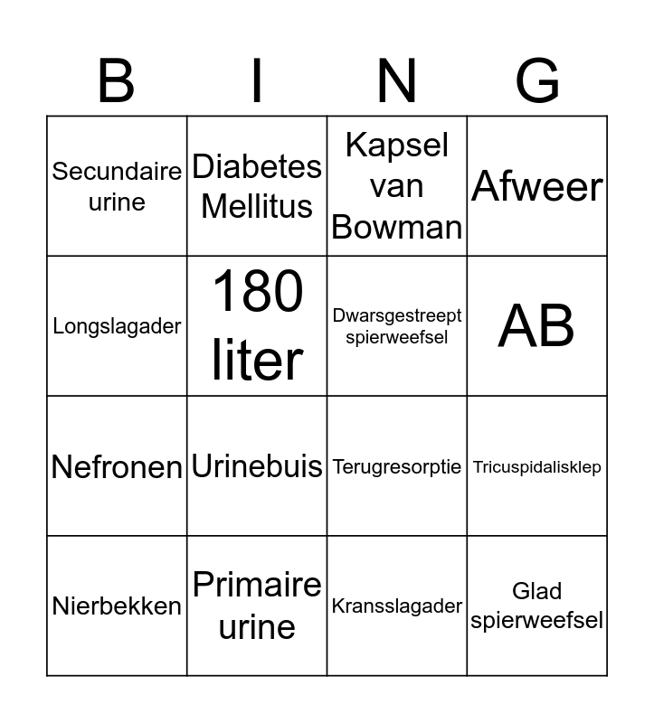 Bloedvaten Bingo | Begrippen Thema 3 | Urinary System (3) | urinary system | urinary system