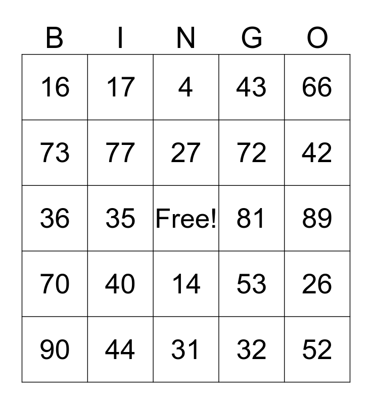 This bingo card has a free space and 99 words: 1, 2, 3, 4, 5, 6, 7, 8, 9, 10, 11, 12, 13, 14, 15, 16, 17, 18, 19, 20, 21, 22, 23, 26, 25, 26, 27, 28, 29, 30, 31, 32, 33, 34, 35, 36, 37, 38, 39, 40, 41, 42, 43, 44, 45, 46, 47, 48, 49, 50, 51, 52, 53, 54, 55, 56, 57, 58, 59, 60, 61, 62, 63, 64, 65, 66, 67, 68, 69, 70, 71, 72, 73, 74, 75, 76, 77, 78, 79, 80, 81, 82, 83, 84, 85, 86, 87, 88, 89, 90, 91, 92, 93, 94, 95, 96, 97, 98 and 99.