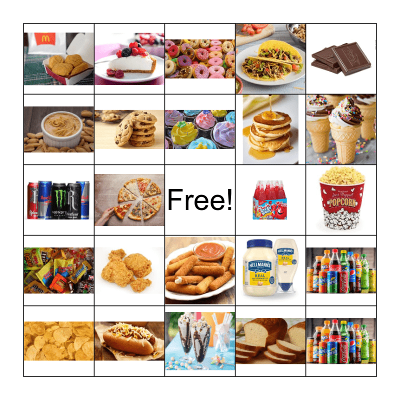 Non-Healthy Food Bingo Card
