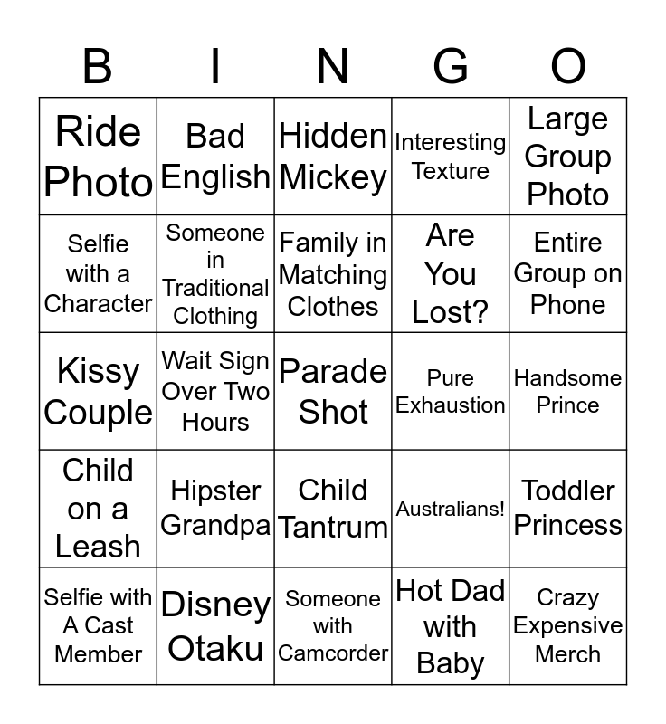 Disney Sea! | Universal Studio | California Adventure Bingo | C2E2 Bingo by Roxie | Coachella B-I-N-G-O