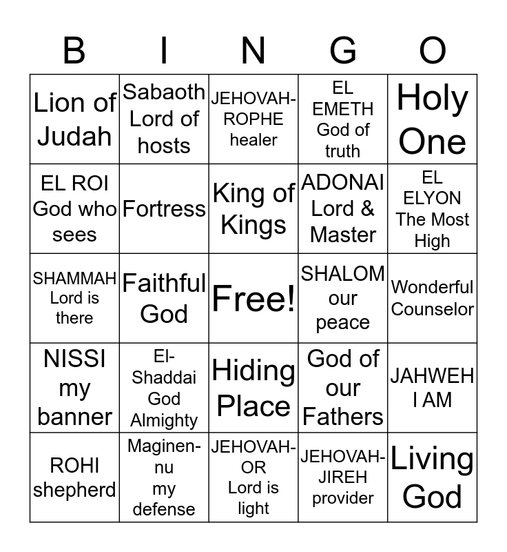 NAMES OF GOD | Names of God Bingo | NAMES of GOD | NAMES OF GOD | Names of God