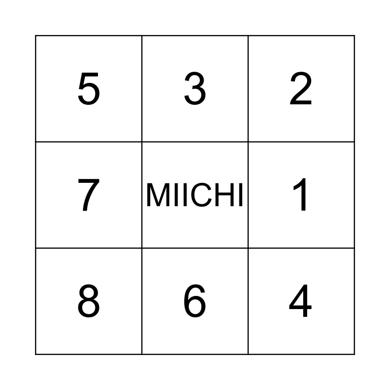 This bingo card has a free space and 8 words: 1, 2, 3, 8, 5, 4, 7 and 6.