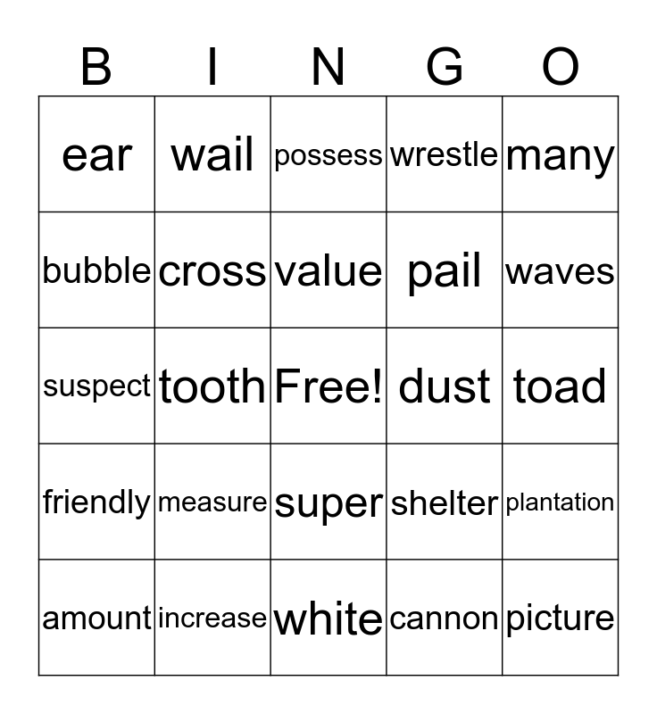 This bingo card has a free space and 50 words: public, picture, arm, white, measure, hum, wail, freezing, bubble, maniacal, cross, wrestle, plantation, shelter, direful, slim, value, dust, full, many, tooth, cannon, ear, pail, domineering, ice, waves, heavenly, possess, super, representative, temper, untidy, board, increase, offer, mug, apologise, tremble, toad, warn, finger, ossified, noiseless, amount, suspect, attack, repair, friendly and coordinated.