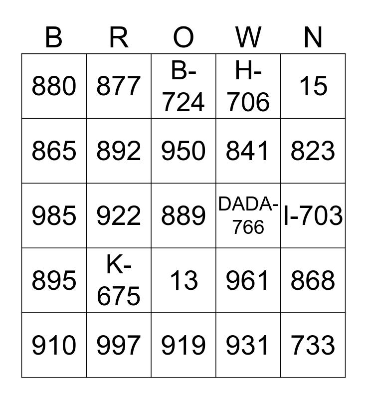 This bingo card has 150 words: 1, 2, 3, 4, 5, 6, 7, 8, 9, 10, 11, 12, 13, 14, 15, 23, 24, 20, 18, 16, 22, 25, 21, 19, 17, 1,000, 997, 994, 991, 988, 985, 982, 979, 976, 973, 970, 967, 964, 961, 958, 955, 952, 950, 946, 943, 940, 937, 934, 931, 928, 925, 922, 919, 916, 913, 910, 907, 904, 901, 898, 895, 892, 889, 886, 883, 880, 877, 874, 871, 868, 865, 862, 859, 856, 853, 850, 847, 844, 841, 838, 835, 832, 829, 826, 823, 820, 817, 814, 811, 808, 805, 802, 799, 796, 793, 790, 787, 784, 781, HENRY-778, KALEL-775, MOMO-772, KHLOE-769, DADA-766, MAMA-763, MILLER-760, CARLOS-757, WHITNEY-754, BALLON FAMILY-751, MEL-748, DORIS-745, 742, 739, 736, 733, 730, A-727, B-724, C-721, D-718, E-715, F-712, G-709, H-706, I-703, J-700, K-675, L-650, M-635, N-620, O-610, P-609, Q-606, R-603, S-600, T-575, U-525, V-520, W-515, X-510, Y-505, Z-555, 550, 500, 100, 1A, 2A, 4C, 9M and 6P.