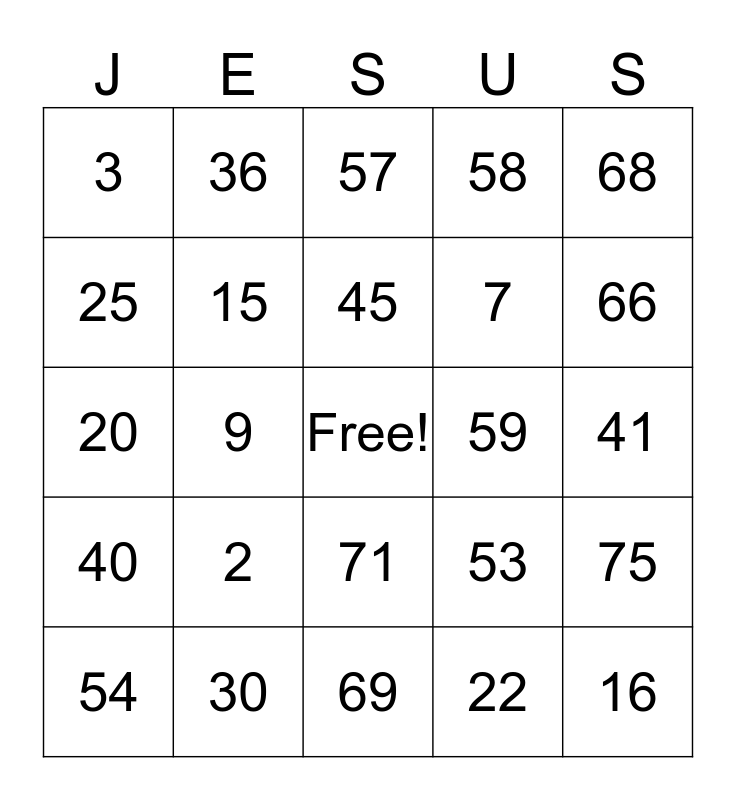 This bingo card has a free space and 24 words: 2, 30, 45, 54, 68, 3, 25, 36, 59, 71, 7, 20, 53, 75, 15, 22, 41, 57, 66, 9, 16, 40, 58 and 69.
