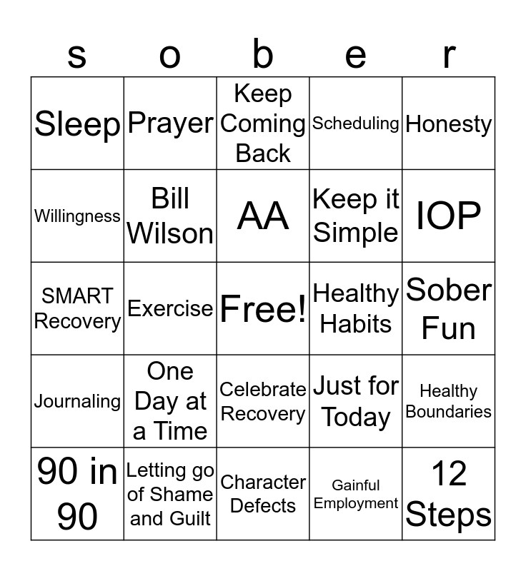 Recovery Bingo | AA Bingo! | BINGO | Sobriety BINGO | Banyan Bingo