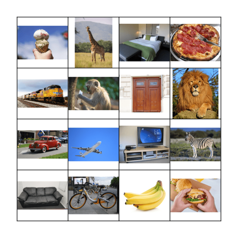 This bingo card has 16 images.