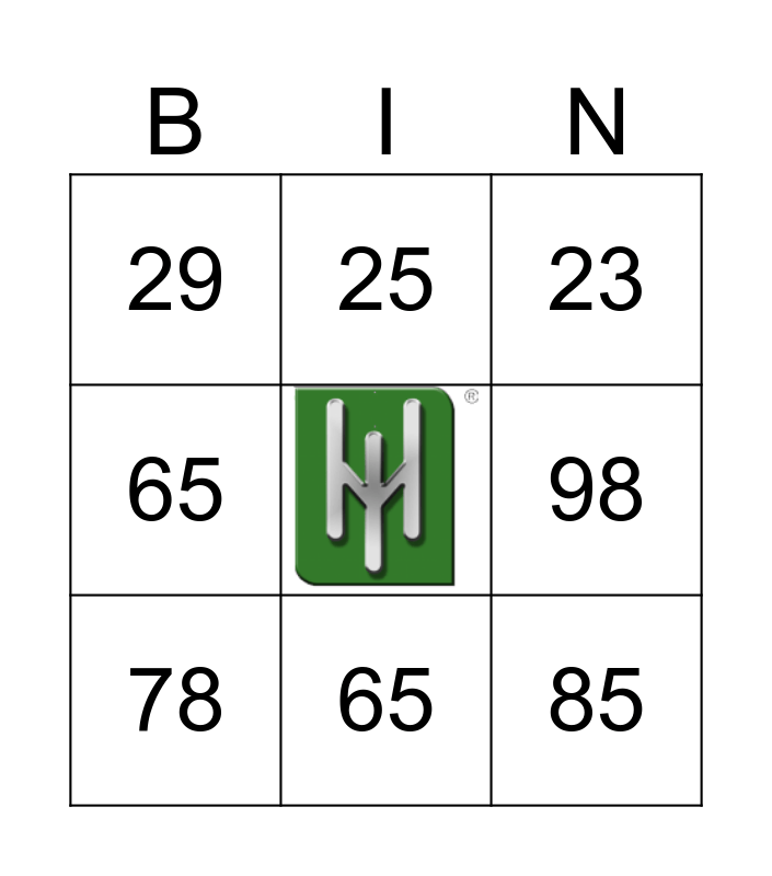 This bingo card has a free space and 14 words: 23, 56, 78, 25, 65, 85, 20, 12, 65, 29, 40, 98, 23 and 50.