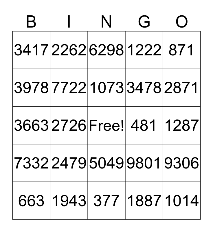 This bingo card has a free space and 29 words: 663, 2886, 2726, 5226, 3417, 6298, 7722, 2479, 481, 1943, 1287, 1014, 377, 1887, 2871, 4794, 5049, 7332, 871, 3663, 9801, 1479, 3478, 3978, 1222, 2262, 9306, 1073 and 6633.