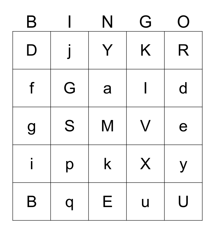 uppercase | uppercase and lowercase letters | uppercase and lowercase letters | Ps Cl Gr Ly Ra Vd | ALPHABET BINGO