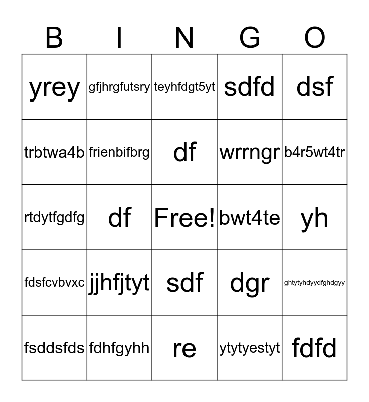 This bingo card has a free space and 39 words: regregff, cvb, hbbvcb, frienbifbrg, fsddsfds, sdf, df, sd gdsfbxc, dsf, fdsfcvbvxc, df, sdfd, fdfd, yh, bwt4te, jjhfjtyt, y ty t, yrey, edr, dgr, trbtwa4b, re, wrrngr, b4r5wt4tr, jgrtu, ghert7ytge, erytefg, tytesydfg, yhetyerg, gfjhrgfutsry, ghgfd ynes, fytyseryfeg 65y t, teyhfdgt5yt, fdhfgyhh, ytytyestyt, hgfdh6tyhdt, ghtytyhdyydfghdgyy, rtdytfgdfg and fdgtdfgf.
