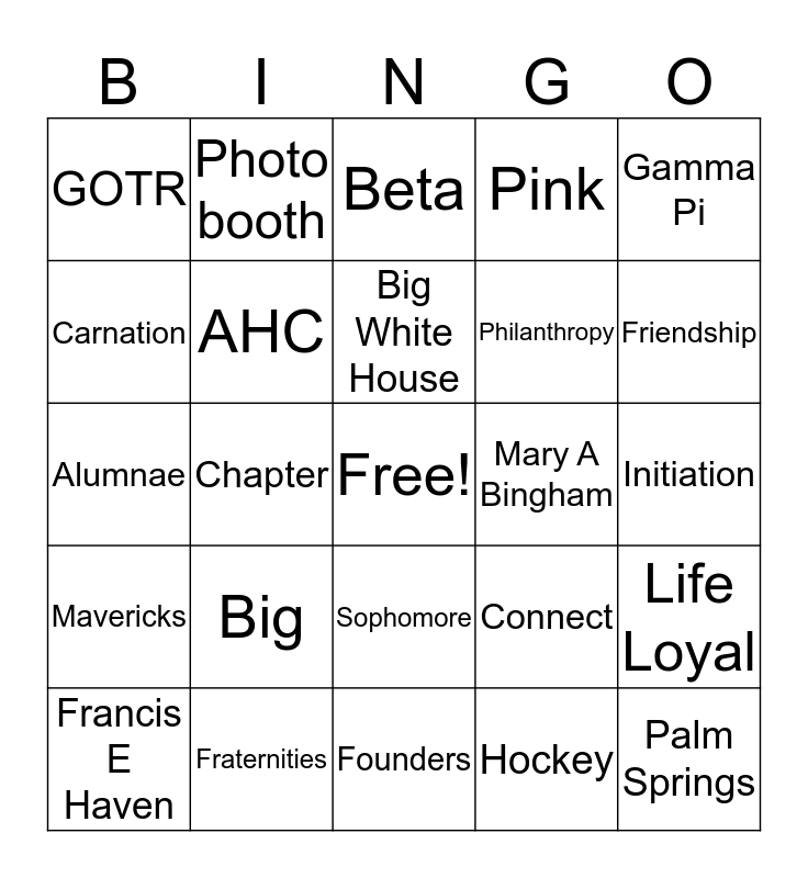Gamma Phi Bingo | Sisterhood Bingo | Sisterhood Bingog | Gamma Phi Bingo | Gamma Phi Beta Bingo