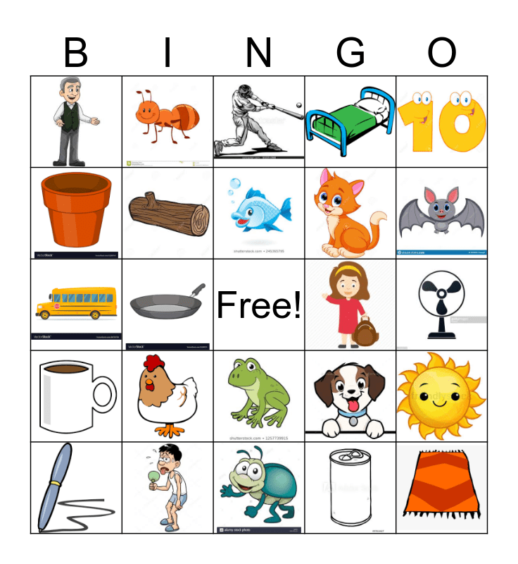 This bingo card has 26 images and a free space.