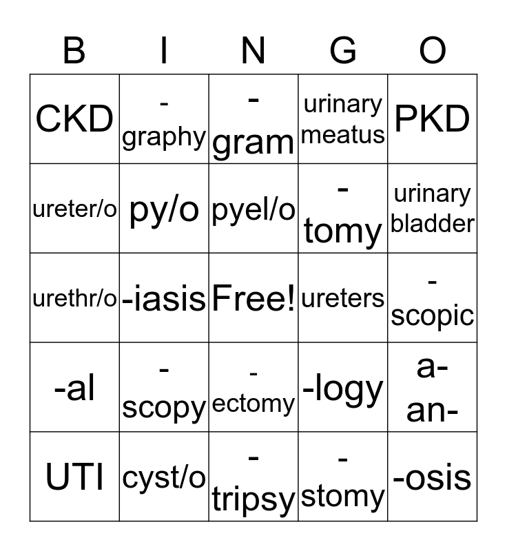 Urinary System | Chapter 6 & 7 Urinary amd Male Reproduction System | Chapter 6 | Urinary System | Urinary System Bingo | Word Parts Bingo