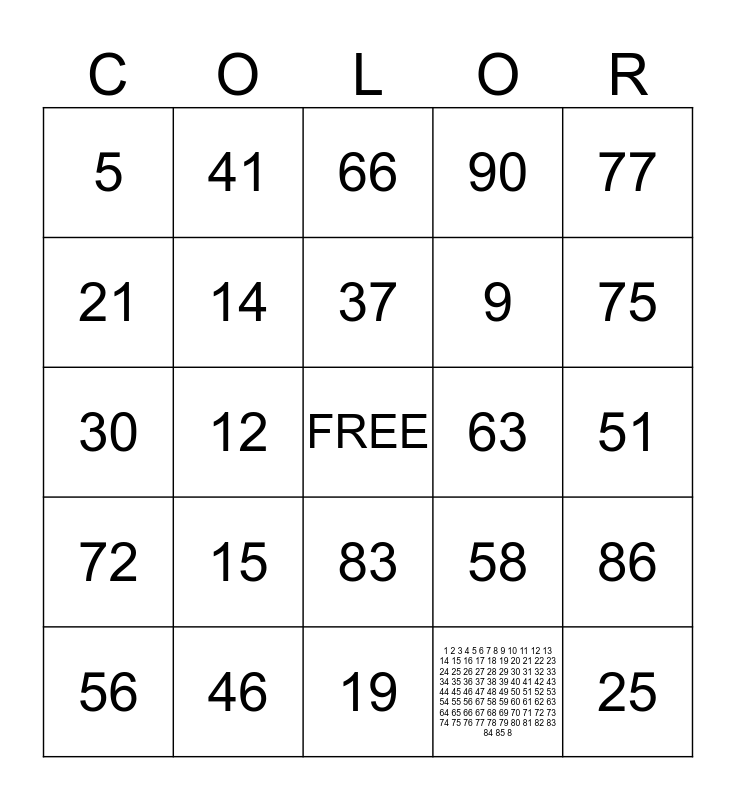 COLOR Bingo Card