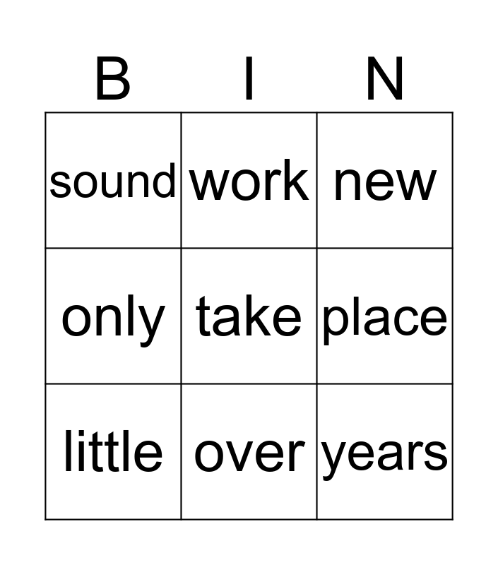 This bingo card has 10 words: over, new, sound, take, only, little, work, know, place and years.