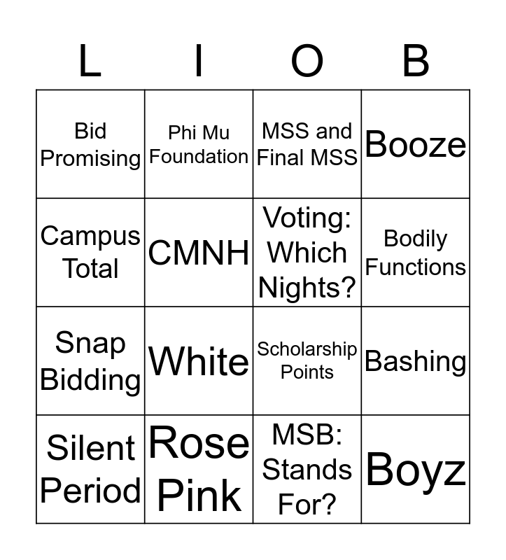 Phi Mu Bingo | Phi Mu Bid Day Bingo | Phi Mu Bingo | Community Education Bingo | Phi Retreat Bingo