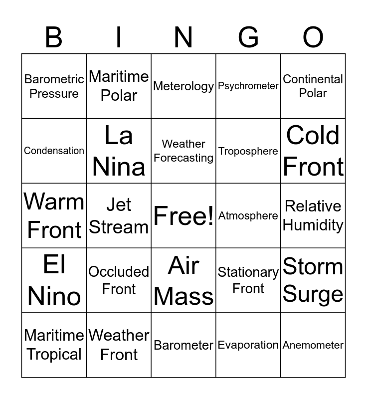 Air Masses and Fronts Bingo | Air Masses and Fronts Bingo | Air Masses and Fronts Bingo | Weather Vocabulary Bingo | WEATHER AND WATER