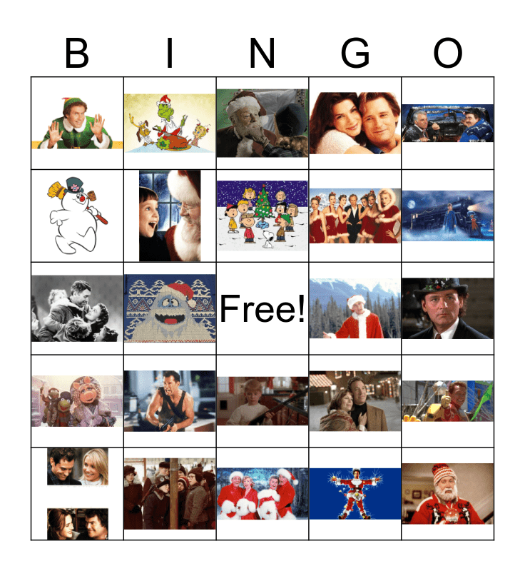This bingo card has 24 images and a free space.