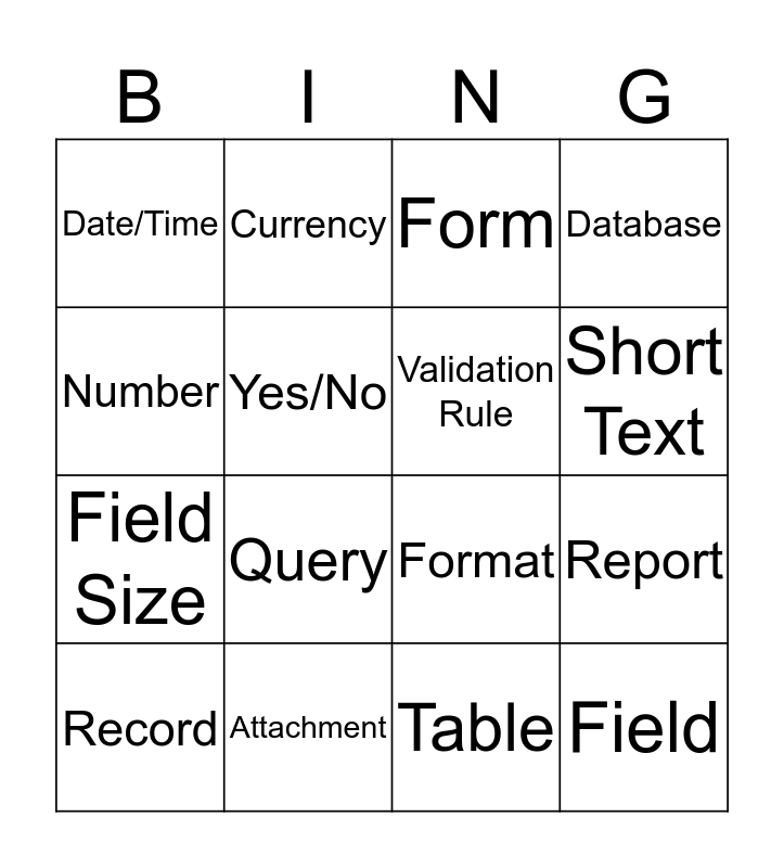 Database Systems | ACCESS BINGO 5 / 6 | Databases | Spreadsheet Modelling | Database Bingo