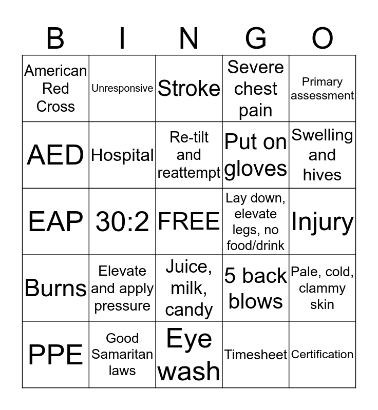 CPR Bingo | FIRST AID | First Aid BINGO | FIRST AID | FIRST AID