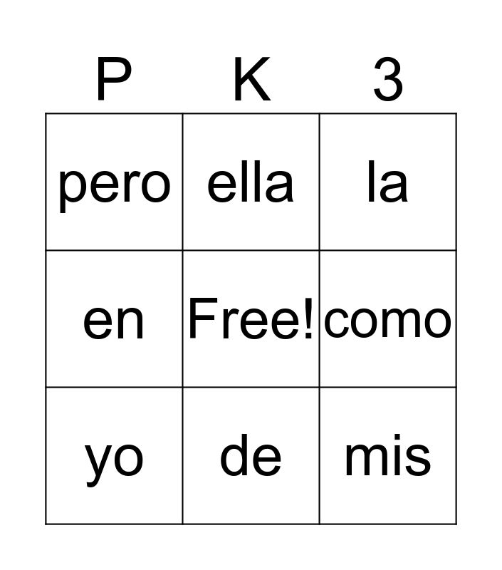 This bingo card has a free space and 32 words: y, a, o, no, su, yo, mis, soy, ella, tu, de, la, se, dos, ir, un, el, los, del, por, con, una, para, al, que, en, las, como, pero, dar, color and gusta.