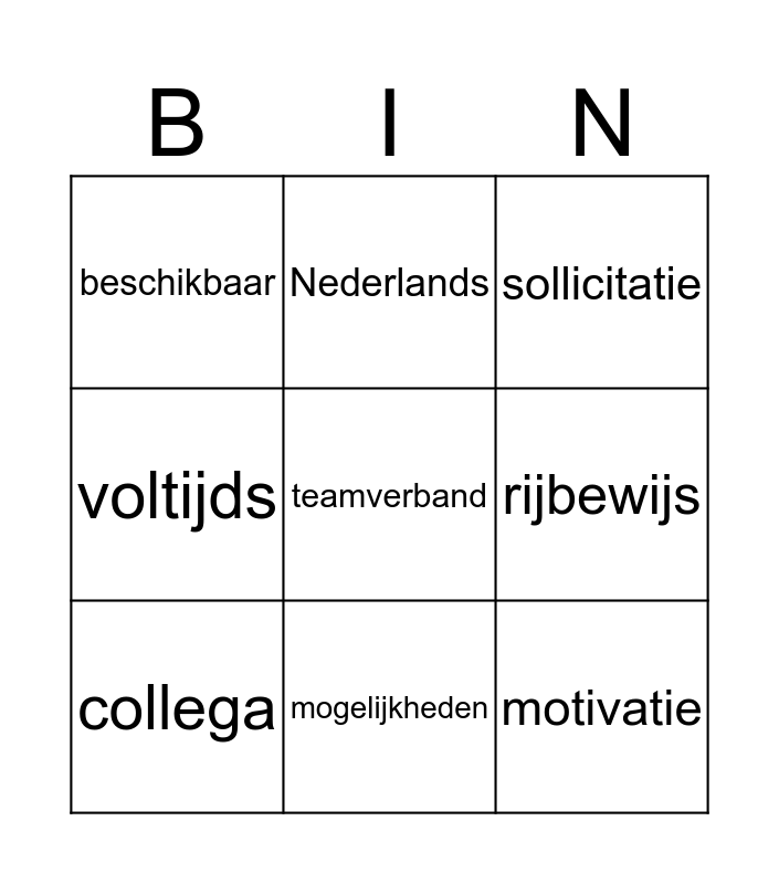 This bingo card has 37 words: bijlage, computer, flexibel, collega, Free!, stressbestendig, mogelijkheden, ploegwerk, teamverband, contract, opleiding, voltijds, deeltijds, ervaring, rijbewijs, beleefd, verzorgd, sollicitatie, horeca, kandidaat, beschikbaar, afspraak, verplaatsen, geboren, zelfstandige, bediende, Nederlands, België, Oostende, vacature, afwasser, tijdelijk, weekend, probleem, betrouwbaar, motivatie and gewerkt.