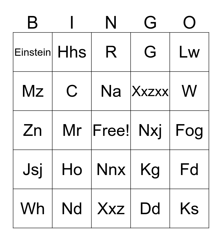 This bingo card has a free space and 54 words: Hi, Ho, Ha, Hatd, Fog, S, C, I, G, O, Einstein, Fun, Dd, Fd, Wz, Xx, Na, Xxzxx, Eo, Wh, Nd, Xxz, Nxj, Lw, Gzhs, Hhs, Nnx, Jd, Sj, 1, W, Hdh, T, Y, Mz, Me, R, Kg, Ks, Zn, Hxh, Mz, Jxkx, Jdjd, Jz, Jcj, Jxjx, Jxkx, W, Jsj, Mr, Z, L and P.
