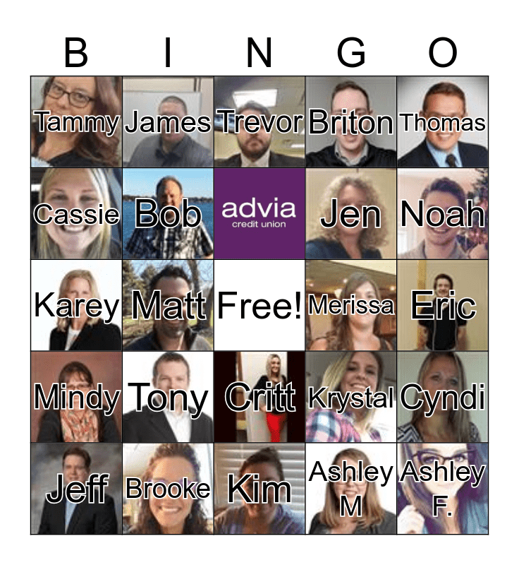 This bingo card has 24 images, a free space and 23 words: Jeff, Tony, Ashley M, Thomas, Tammy, James, Trevor, Merissa, Eric, Karey, Bob, Krystal, Cyndi, Cassie, Brooke, Kim, Briton, Noah, Mindy, Matt, Critt, Jen and Ashley F..