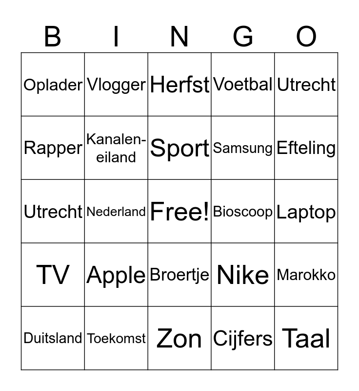 ⚠ This card has duplicate items: Serie (2), Nike (2), Kanalen-eiland (2), Laptop (2), Utrecht (2), Sneeuw (2), Adidas (2), Zon (2)
