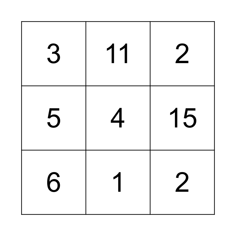This bingo card has 10 words: 1, 2, 3, 4, 5, 6, 11, 13, 15 and 2.
