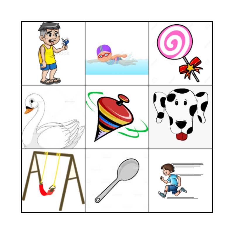 sw- and sp- Words Bingo Card