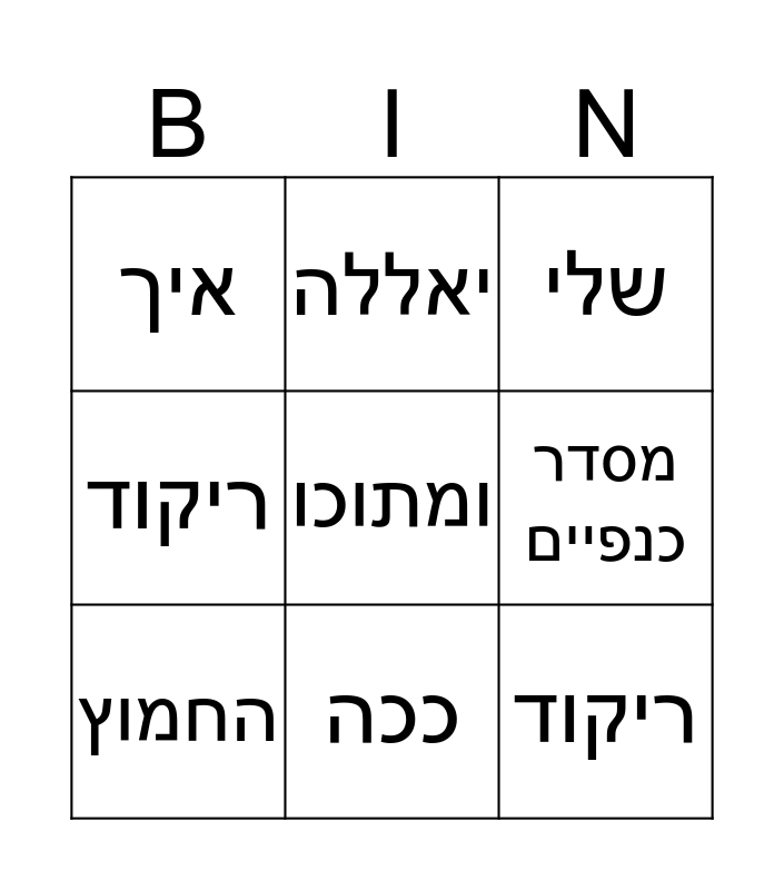 This bingo card has 15 words: Free!, הקרמבו, שלי, איך, ככה, ומתוכו, יוצא, מוראל, מסדר כנפיים, ריקוד, הבטטה, ריקוד, החמוץ, יאללה and קרמבו.