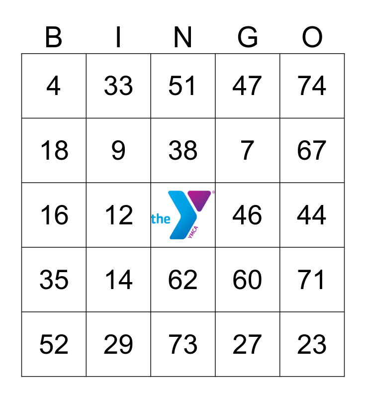This bingo card has a free space and 24 words: 14, 29, 38, 52, 74, 4, 18, 33, 46, 62, 7, 16, 60, 71, 9, 27, 44, 51, 67, 12, 23, 35, 47 and 73.