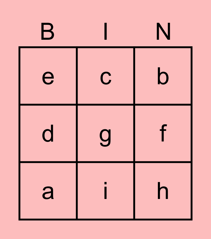 This bingo card has 9 words: a, b, c, d, e, f, g, h and i.