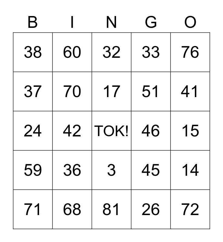 This bingo card has a free space and 88 words: 1, 2, 3, 4, 5, 6, 7, 8, 10, 11, 12, 13, 14, 15, 16, 17, 18, 19, 20, 21, 22, 23, 24, 25, 26, 27, 28, 29, 30, 31, 32, 33, 34, 35, 36, 37, 38, 39, 40, 41, 42, 43, 44, 45, 46, 47, 48, 49, 50, 51, 52, 53, 55, 56, 57, 58, 59, 60, 61, 62, 63, 64, 65, 66, 67, 68, 69, 70, 71, 72, 73, 74, 75, 76, 77, 78, 79, 80, 81, 82, 83, 84, 85, 86, 87, 88, 89 and 90.