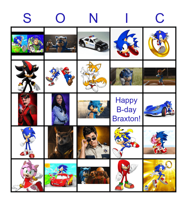 This bingo card has 23 images, a free space and 1 words: Happy B-day Braxton!.