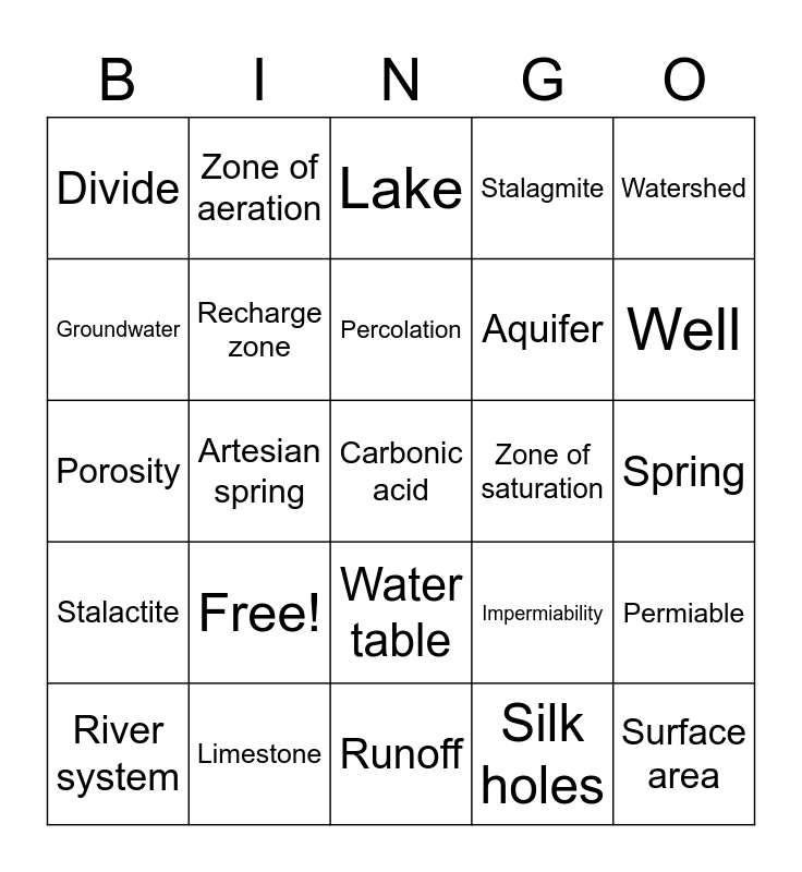 Groundwater | Biology 111 Exam 1 | Morning Meeting Bingo | Surface and Groundwater | Morning Meeting Bingo