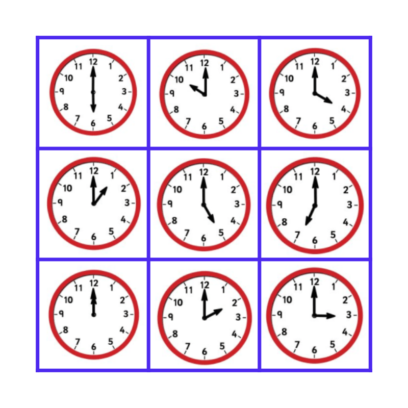 What's the time? Bingo Card