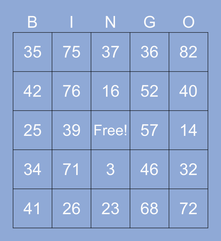 This bingo card has a free space and 90 words: 1, 2, 3, 4, 5, 6, 7, 8, 9, 10, 11, 12, 13, 14, 15, 16, 17, 18, 19, 20, 21, 22, 23, 24, 25, 26, 27, 28, 29, 30, 31, 32, 33, 34, 35, 36, 37, 38, 39, 40, 41, 42, 43, 44, 45, 46, 47, 48, 49, 50, 51, 52, 53, 54, 55, 56, 57, 58, 59, 60, 61, 62, 63, 64, 65, 66, 67, 68, 69, 70, 71, 72, 73, 74, 75, 76, 77, 78, 79, 80, 81, 82, 83, 84, 85, 86, 87, 88, 89 and 90.